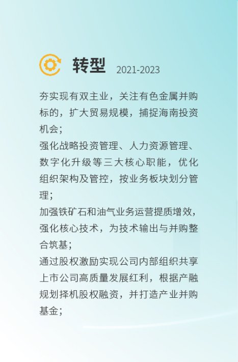 戰(zhàn)略定位致力成為一家以戰(zhàn)略性資源為核心,具有國際影響力的產(chǎn)業(yè)發(fā)展集團 -